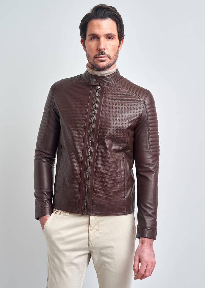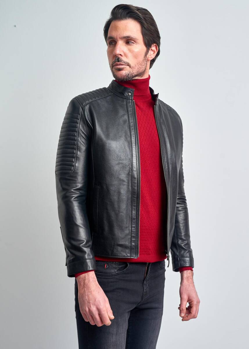 100% Genuine Leather Jacket, Slim Fit, Biker, Original Pierre Cardin Leather Jacket