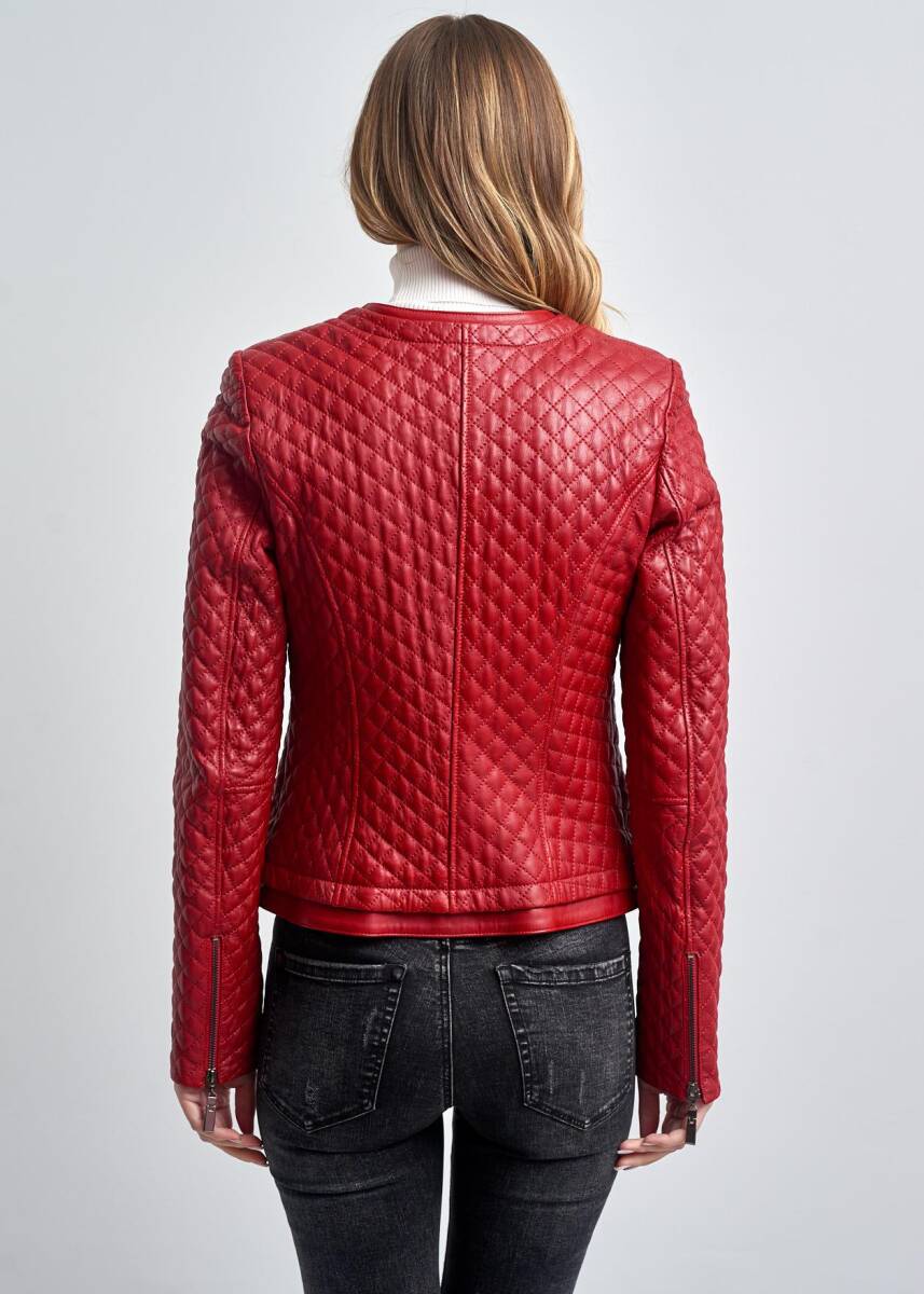 Bayan Deri Ceket, Kapitone, Kısa, Spor Slim Fit,Orjinal Pierre Cardin Deri Ceket