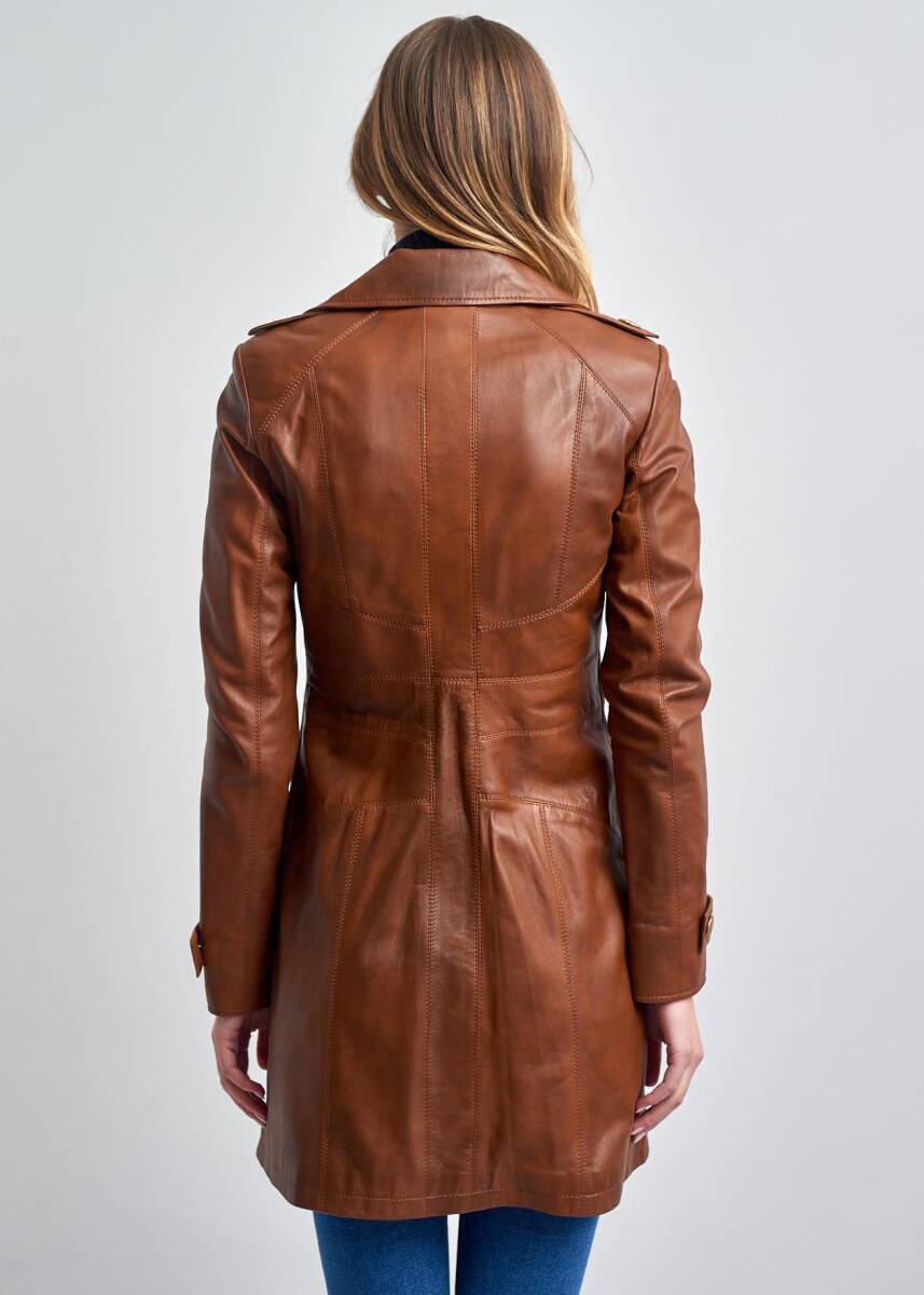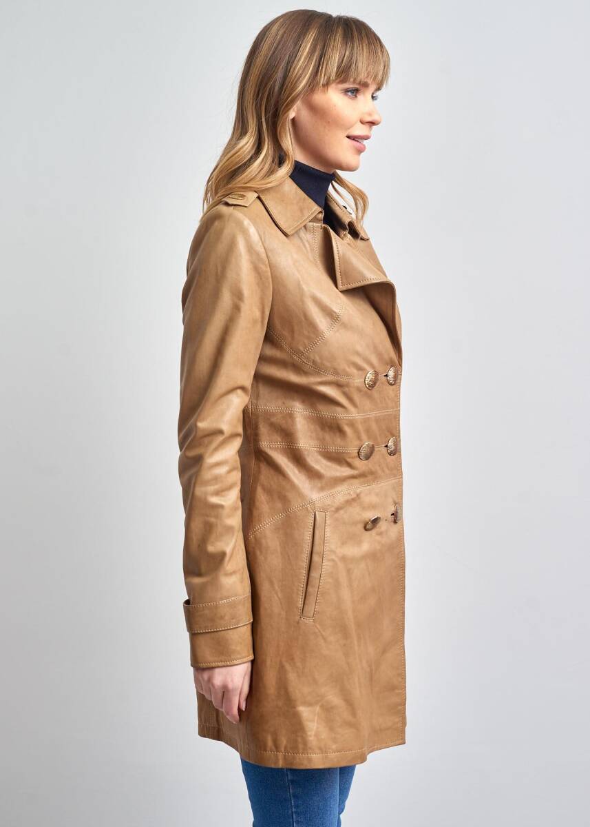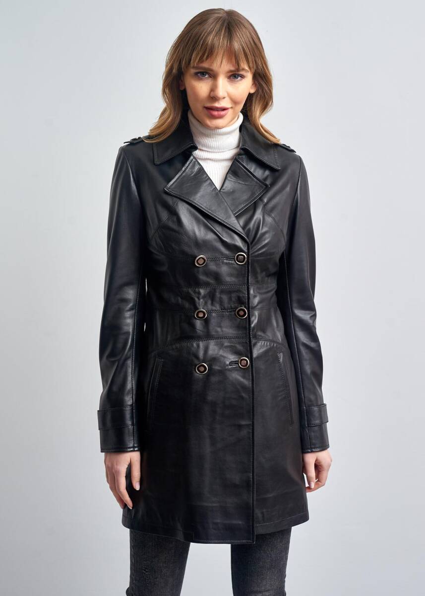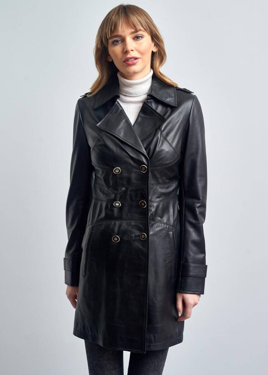 %100 Hakiki Deri ,Uzun,Düğmeli Trençkot, Pierre Cardin Deri Pardesü