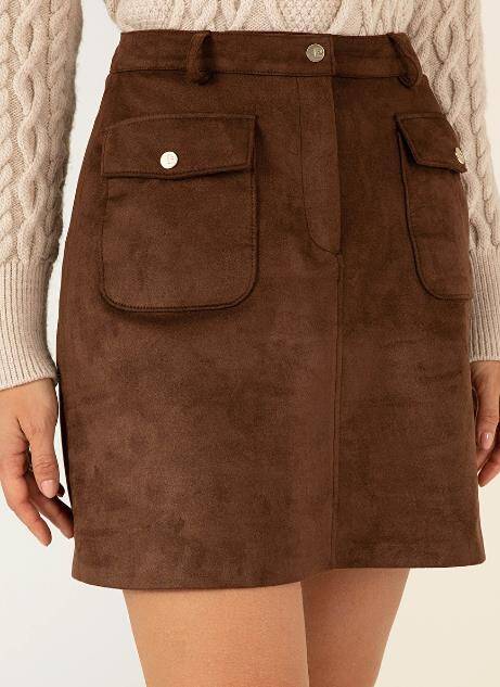 Pierre Cardin Yüksek Bel Kahverengi Suni Deri Kadın Etek