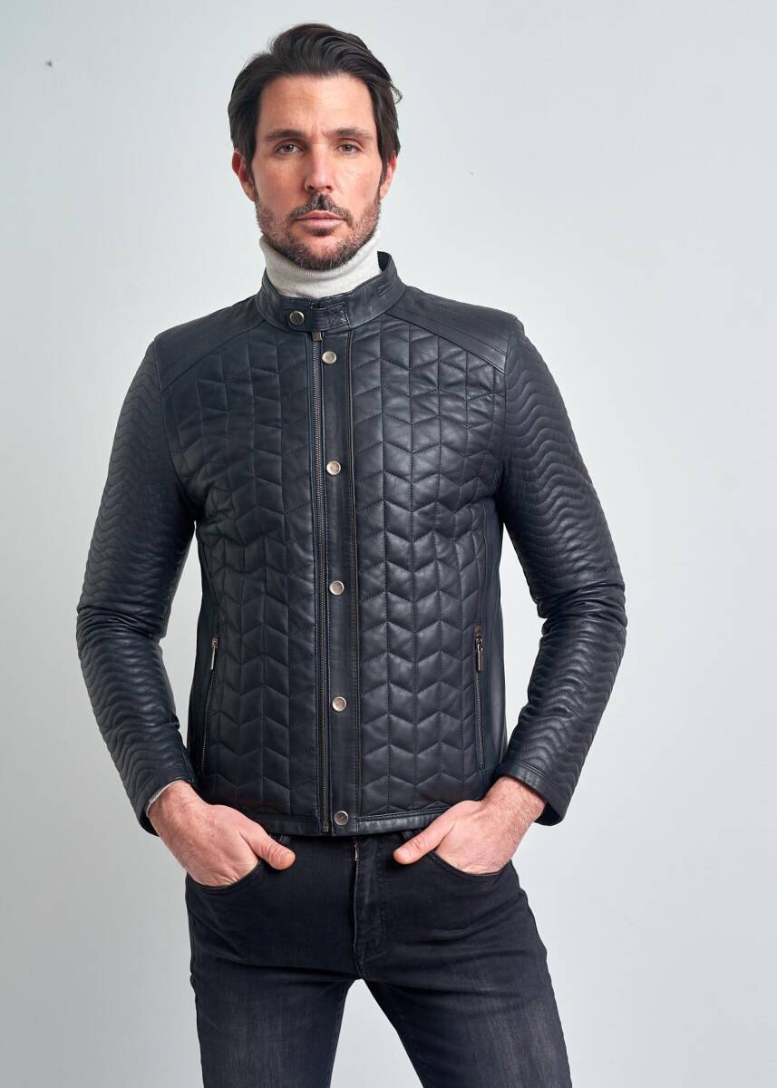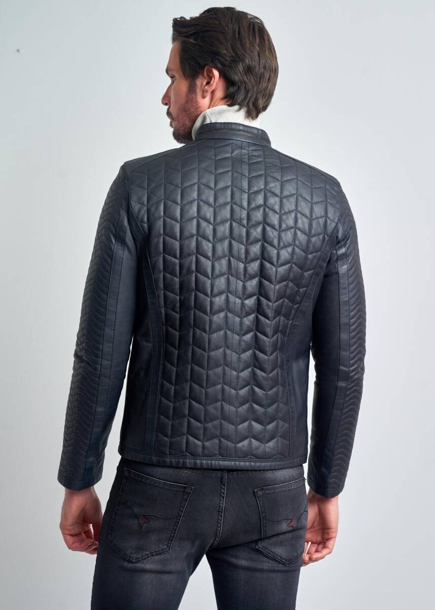 DAVID SLIM COLLAR PATTERNED BIKER GENUINE LEATHER COAT