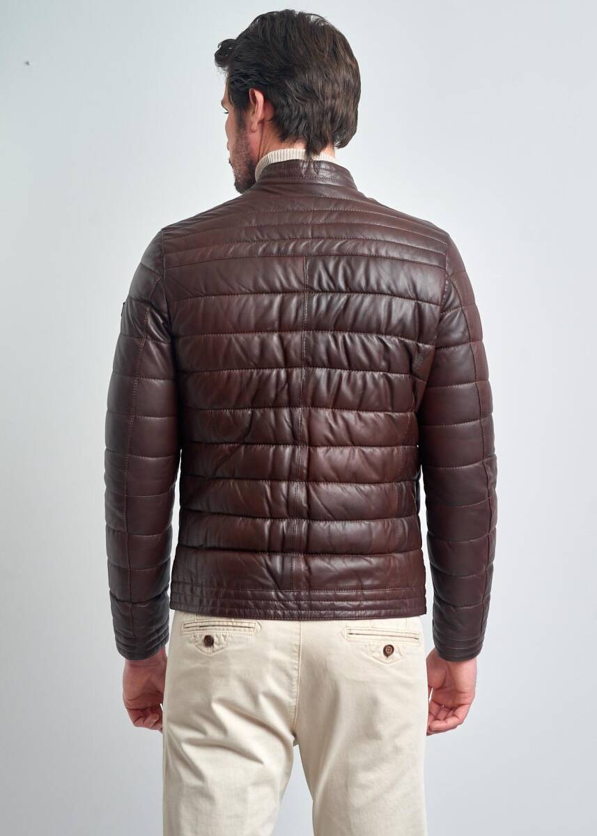 Erkek Yeşil Kolej Yaka Kapitone Hakiki Deri Ceket