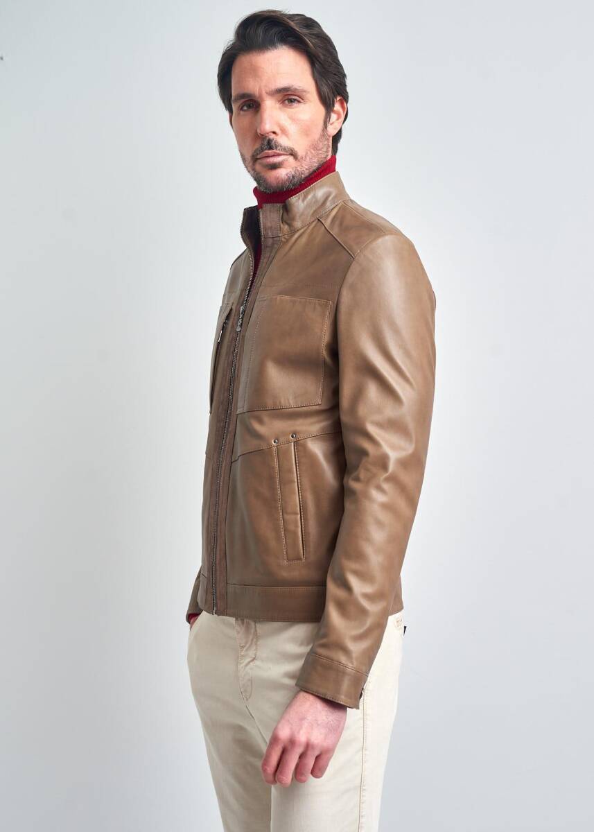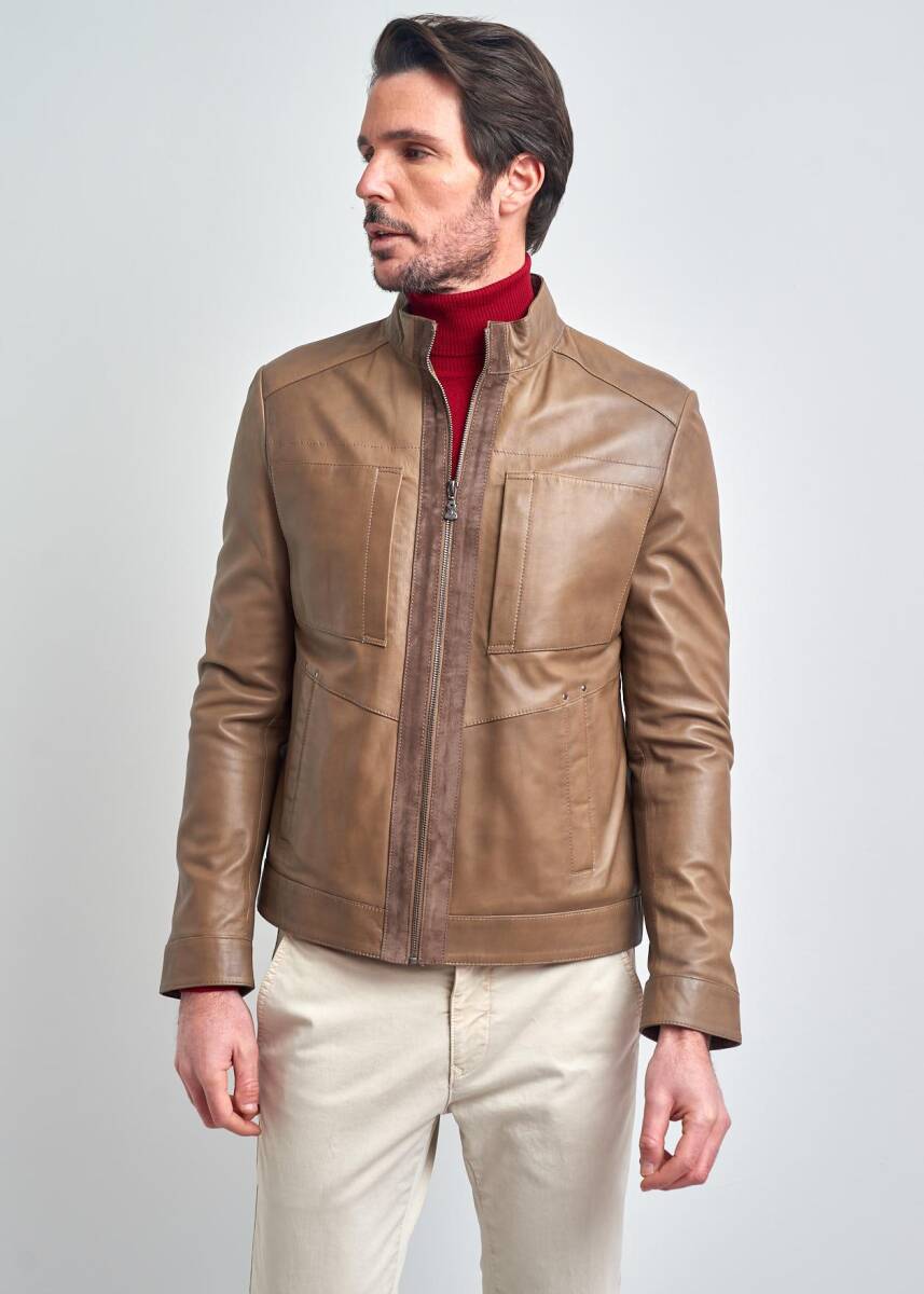 Jean Yandan Cepli, Motorcu Gerçek Deri Ceket