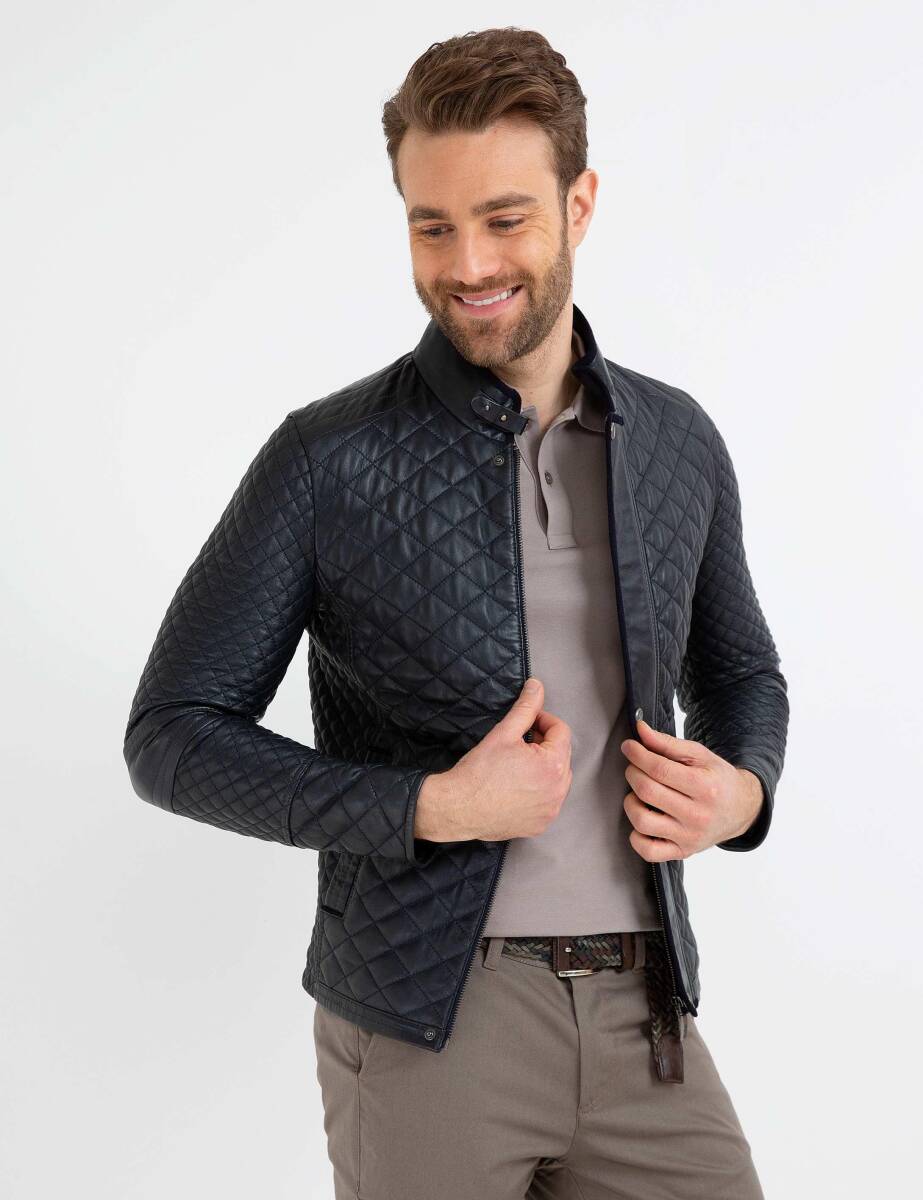 %100 Hakiki Deri Ceket,Garni Detaylı Kapitone Ceket, Orjinal Pierre Cardin Deri Ceket
