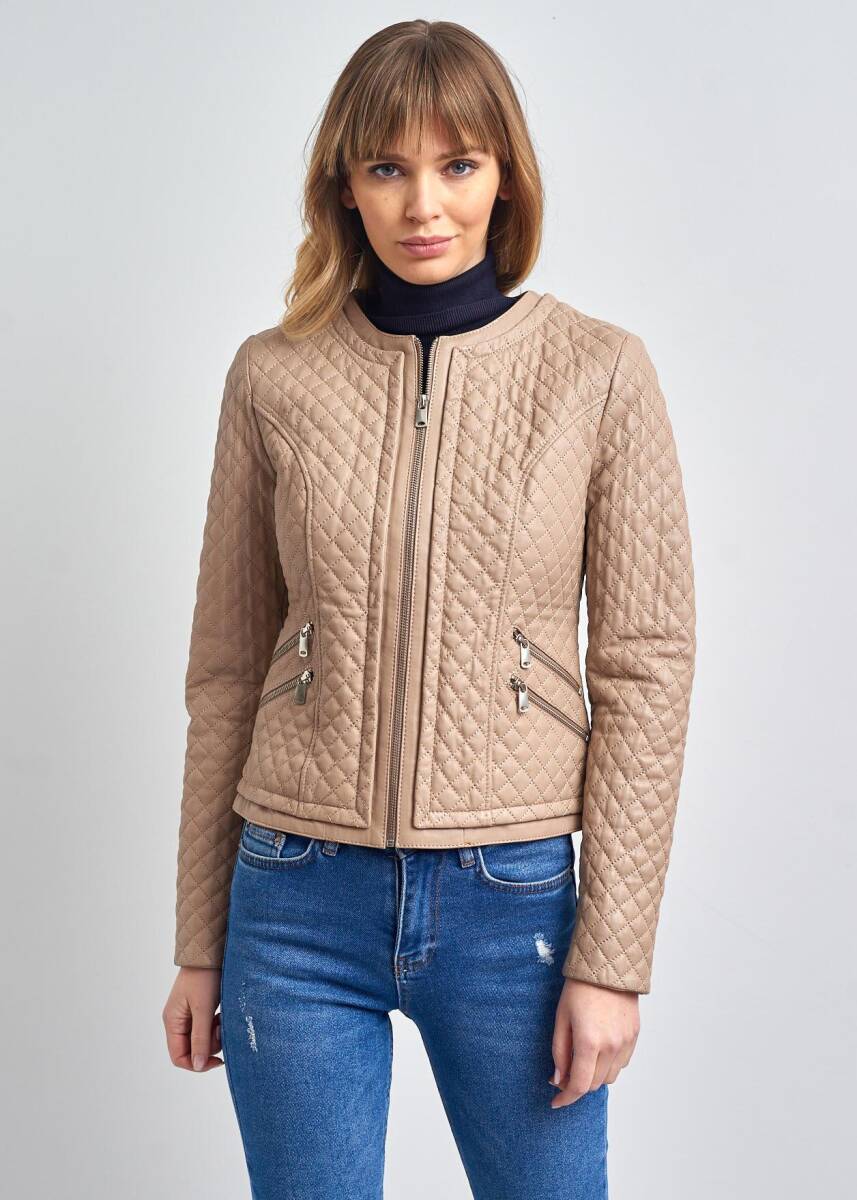 Melanie Quilted Bike Collar Genuine Leather Jacket offers a sleek, modern style for both casual and formal settings. Wear Pierre Cardin Leather with pride.