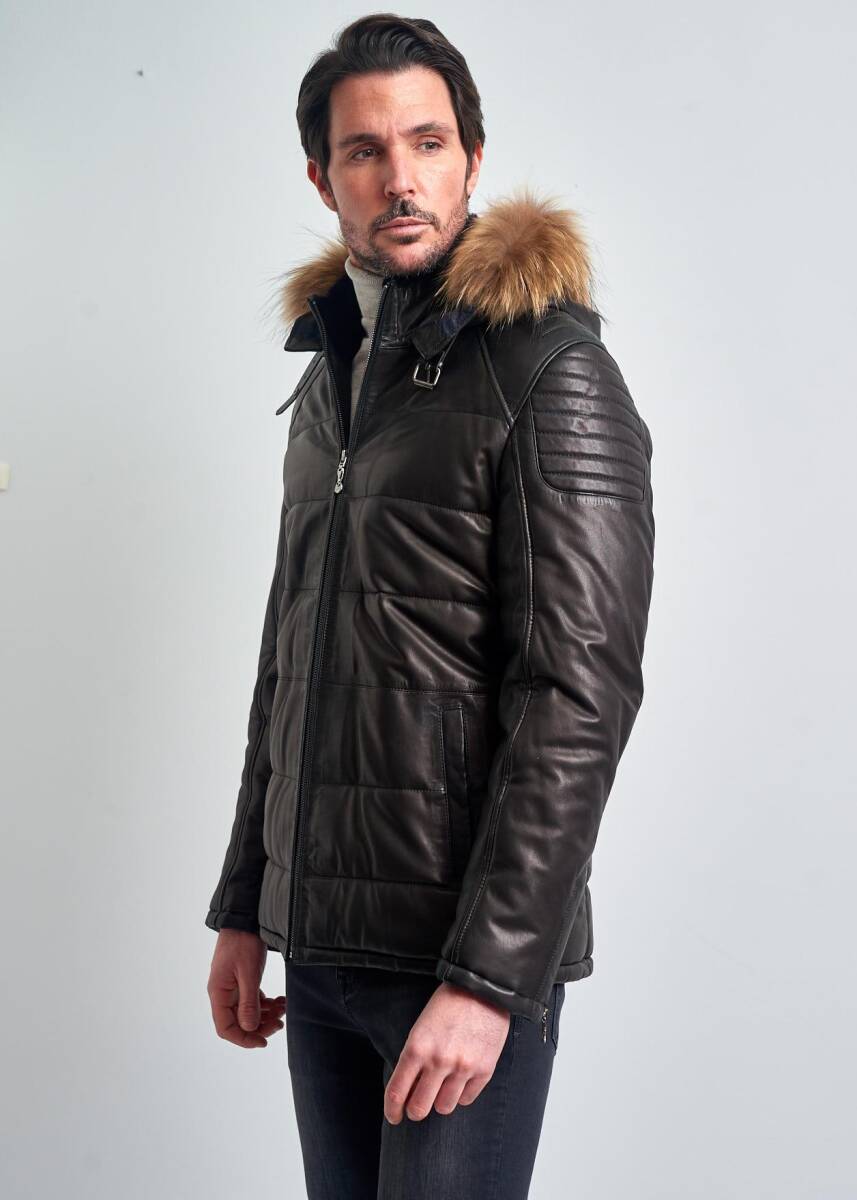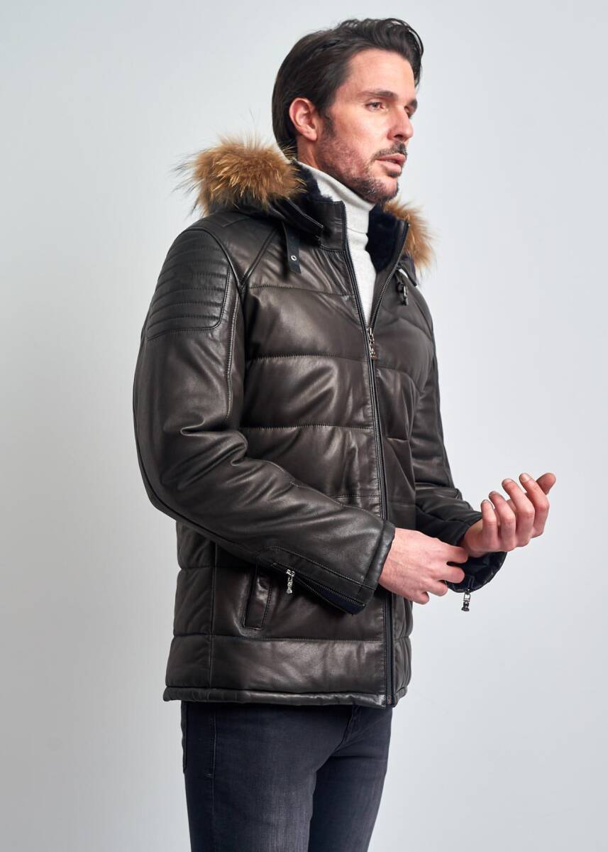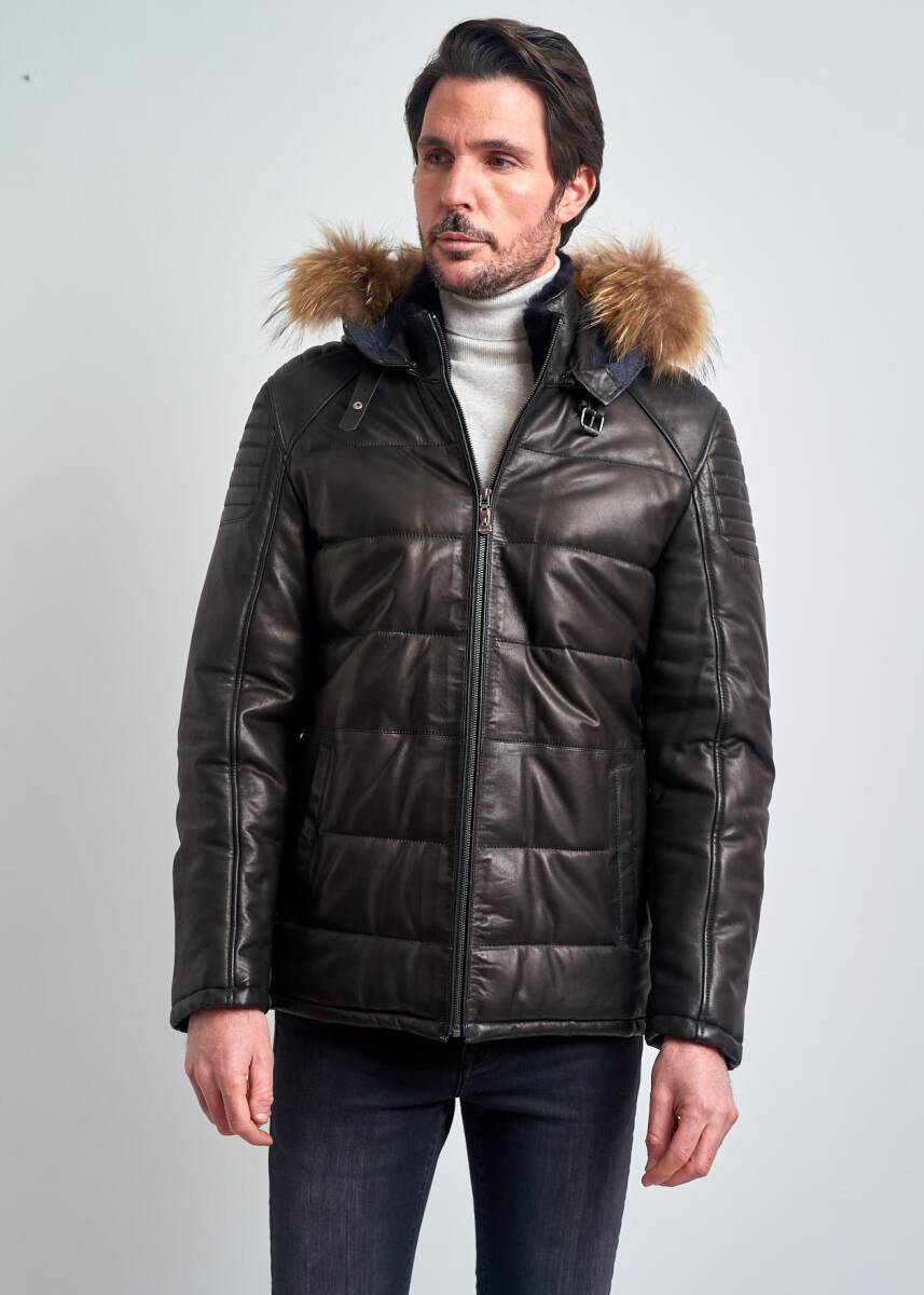 %100 Hakiki Deri ,Şişme,Hakim Yaka, Femuarlı, Çıkarılabilen Kürklü Kapüşon,Orjinal Pierre Cardin Deri Mont