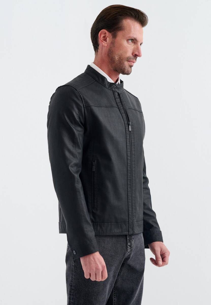 Pierre Cardin Cedric Biker Tarzi Deri Dokuma , Regular Fit, Erkek Suni Deri Mont