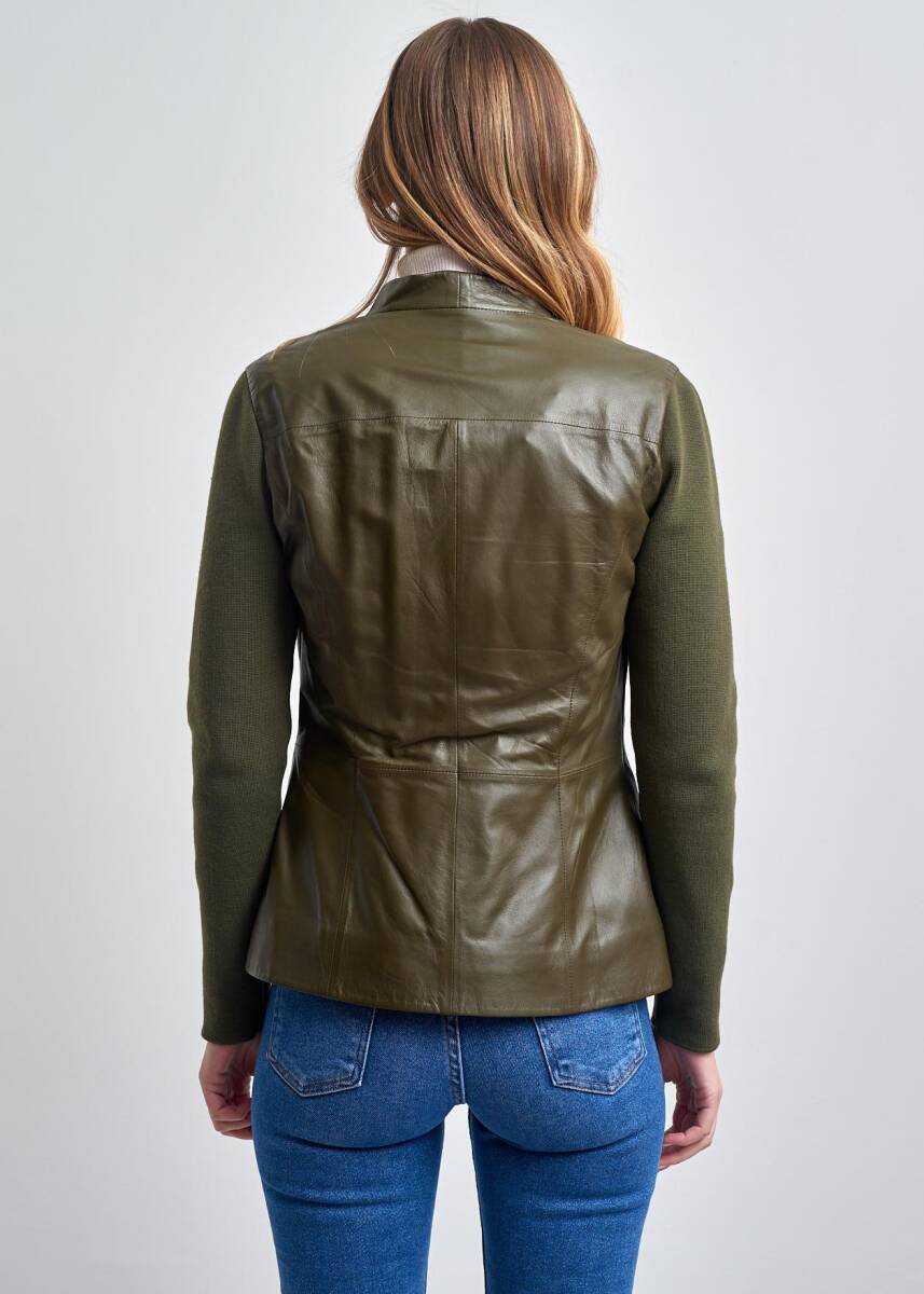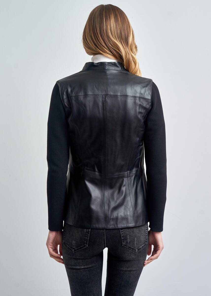 Vivenne Örme Kollu Düğmeli Gerçek Deri Ceket