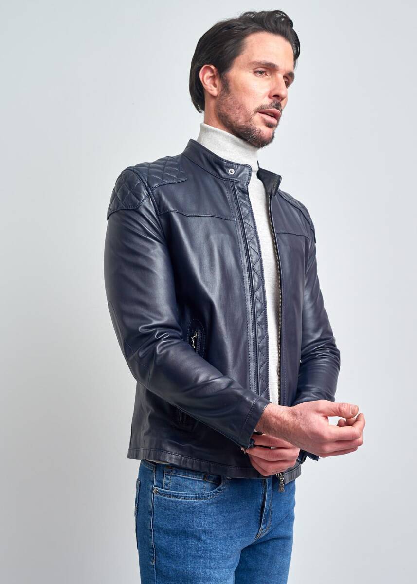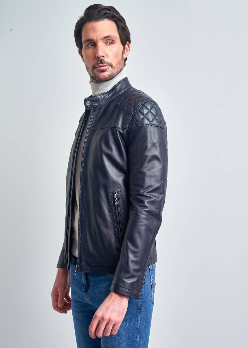 SEBASTIEN STAND COLLAR SPORTY GENUINE LEATHER JACKET